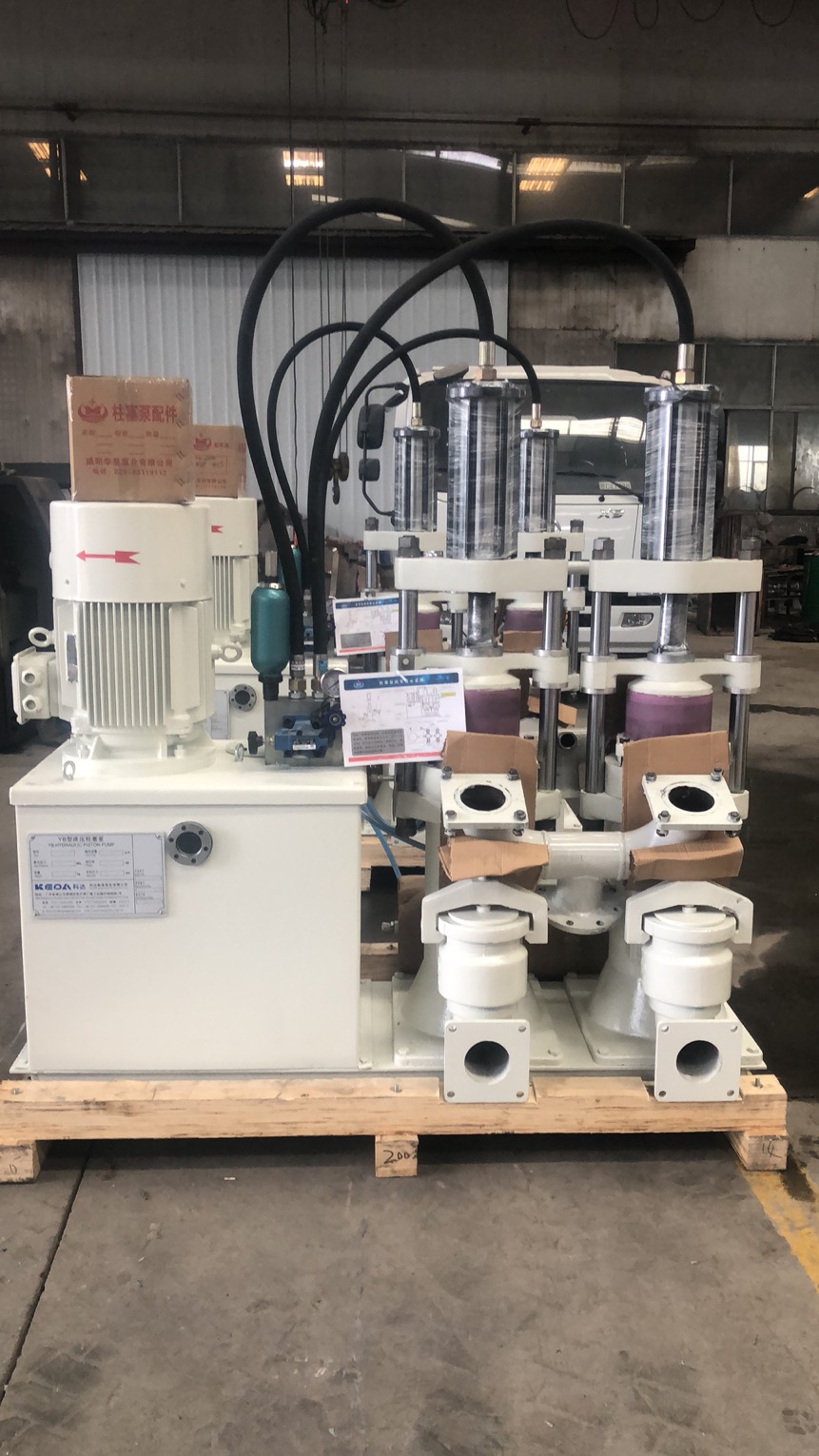 陶瓷柱塞泥漿泵: 采用液壓站油缸液壓驅(qū)動,運行平穩(wěn)無沖擊;采用耐磨、抗腐蝕氧化鋁陶瓷柱塞,氧化鋁陶瓷的洛氏硬度達到HRA80-90,硬度僅次于金剛石,其耐磨性能相當(dāng)于錳鋼的266倍,高鉻鑄鐵的171倍,由于采用組合密封方式,陶瓷柱塞僅與橡膠密封圈發(fā)生摩擦,只要運行過程中冷卻水不中斷,保證冷卻效果,陶瓷柱塞幾乎永不磨損、腐蝕,易損的只有密封件;陶瓷柱塞泵結(jié)構(gòu)簡單,運行穩(wěn)定,工作壓力可達2.5MPa,在污泥不加PAM絮凝劑調(diào)理的情況下,出泥含水率仍低,在節(jié)約成本的情況下符合環(huán)保污泥減量要求,具體使用必須按板框壓濾機板框耐壓值調(diào)整,不可超過耐壓值,否則會損壞板框;柱塞泵運行壓力波動平穩(wěn),使用壽命長,操作維修便捷。