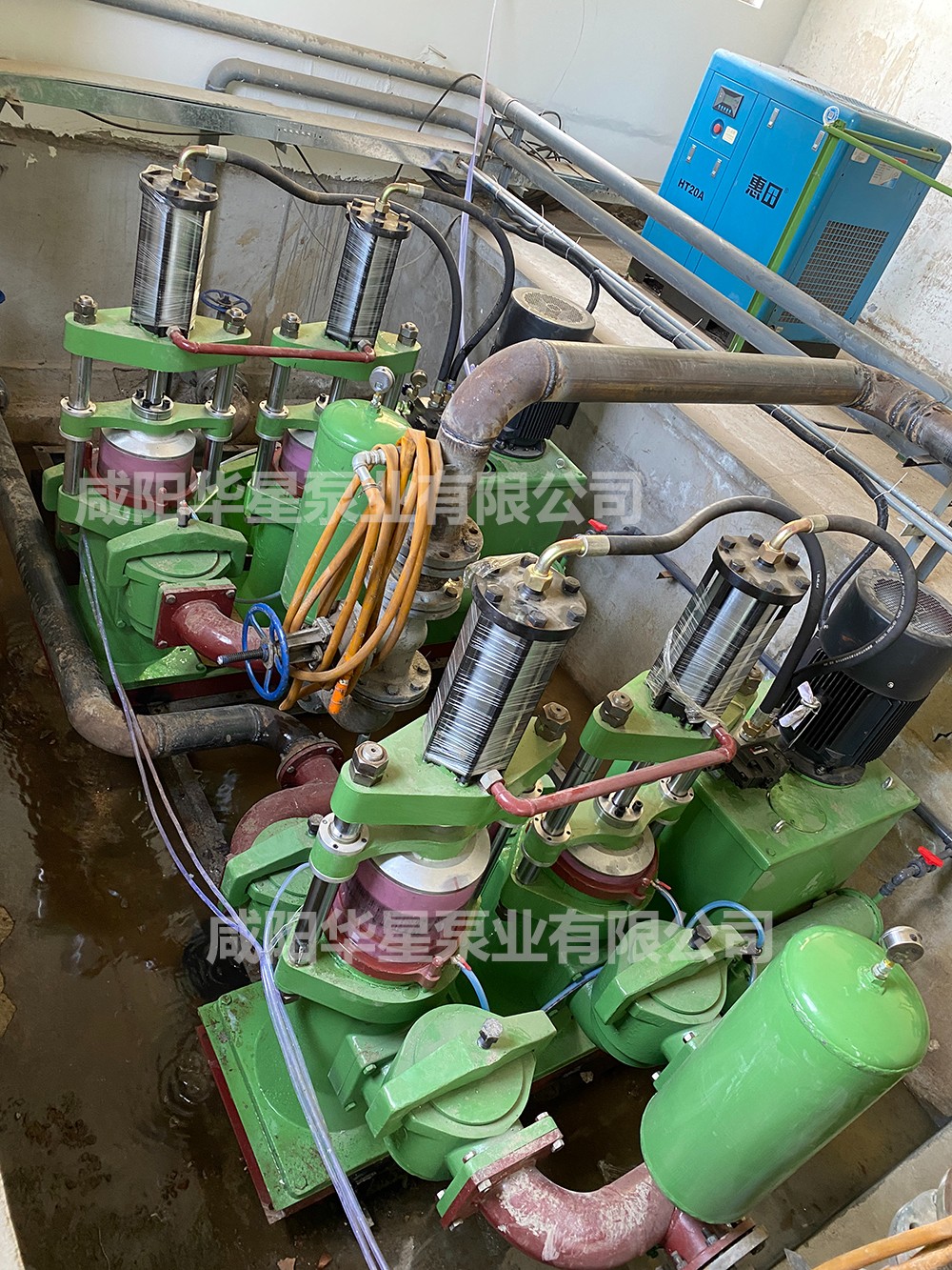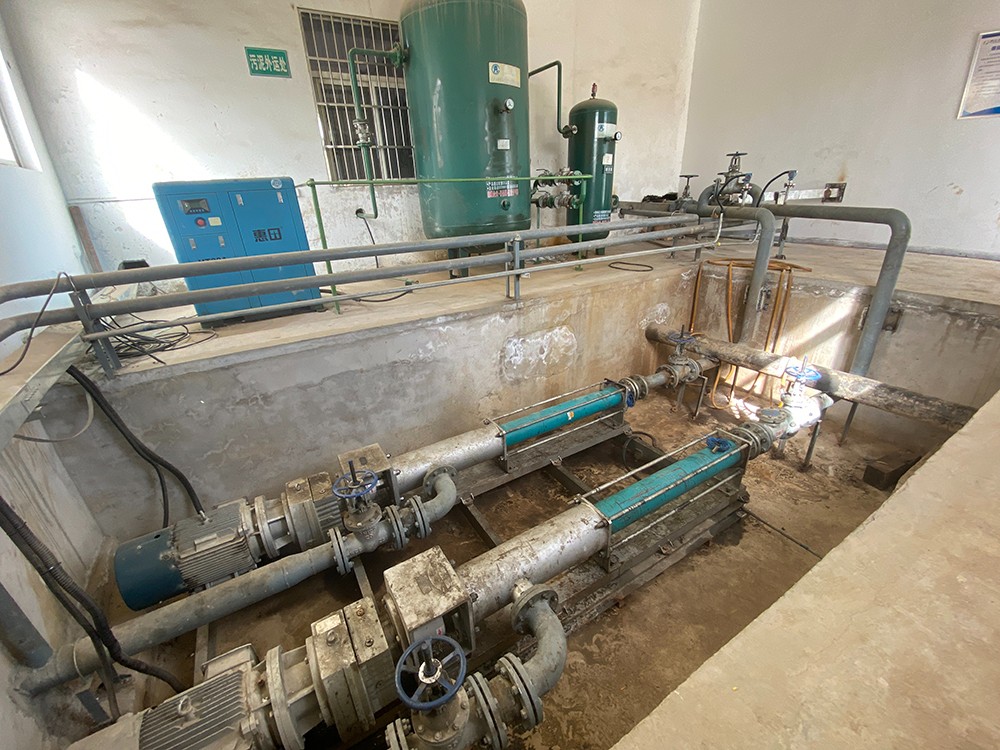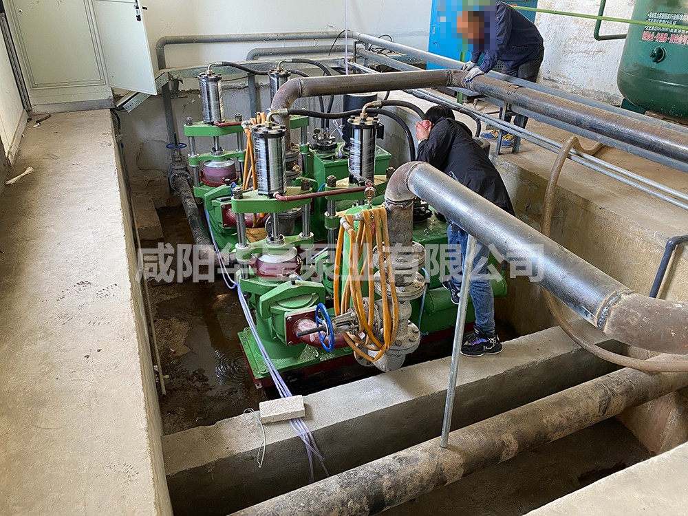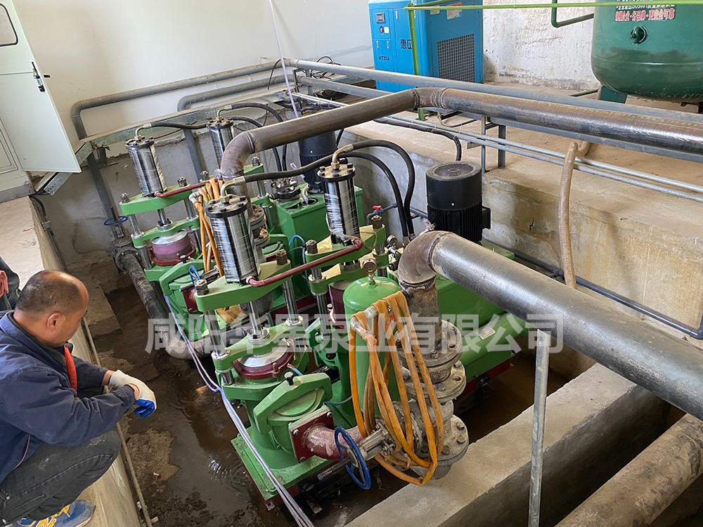 這是更換后使用的節(jié)能型壓濾機(jī)入料泵